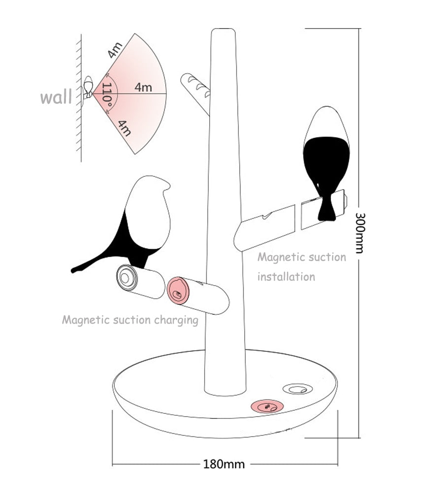 When you go home and open the door, a warm yellow warm light is automatically turned on, and adorable magpies come back to make you feel warm at home for the first time. After the headlights on behalf of the room are turned off, the lights are automatically sensed to prevent you from touching the bed and bumping into the bed, accompanied by your sleep and intimacy.