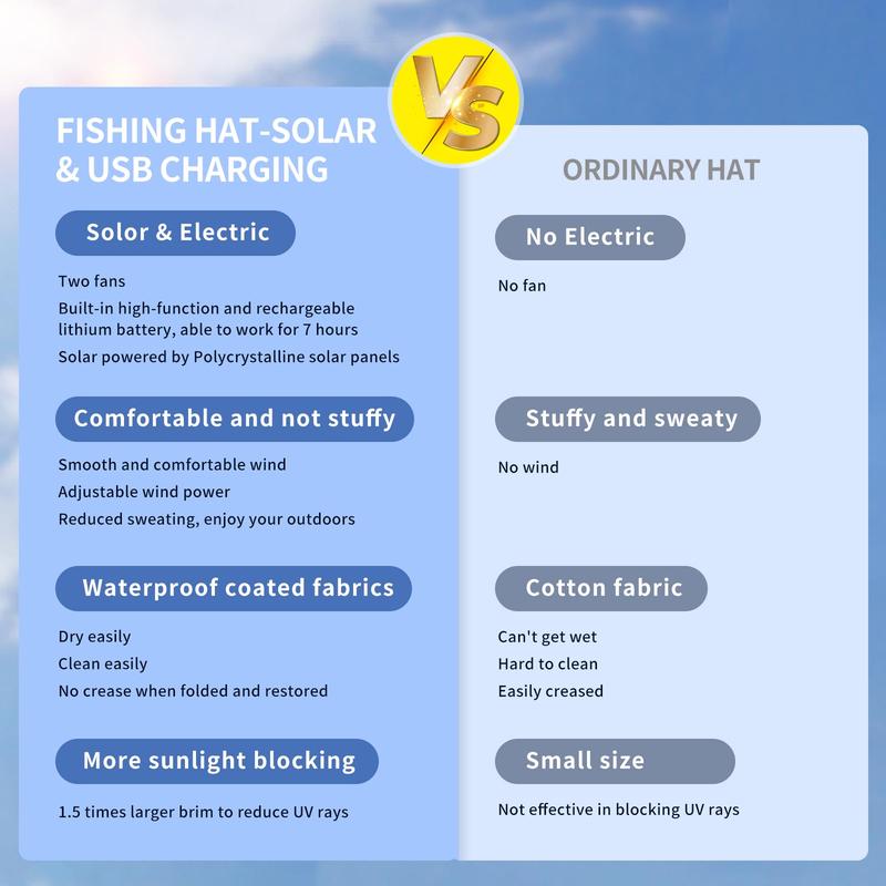 2025 New Solar Fan Outdoor Fishing Hat-Solar Sun Protection Sun Hat with Fan Solar Fan Hat Dual Power Supply Fan Outdoor Fan