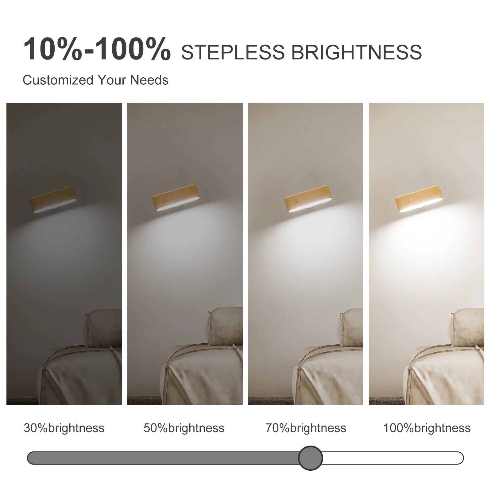 By long-pressing the power button, you can smoothly increase the light's brightness to suit your needs.