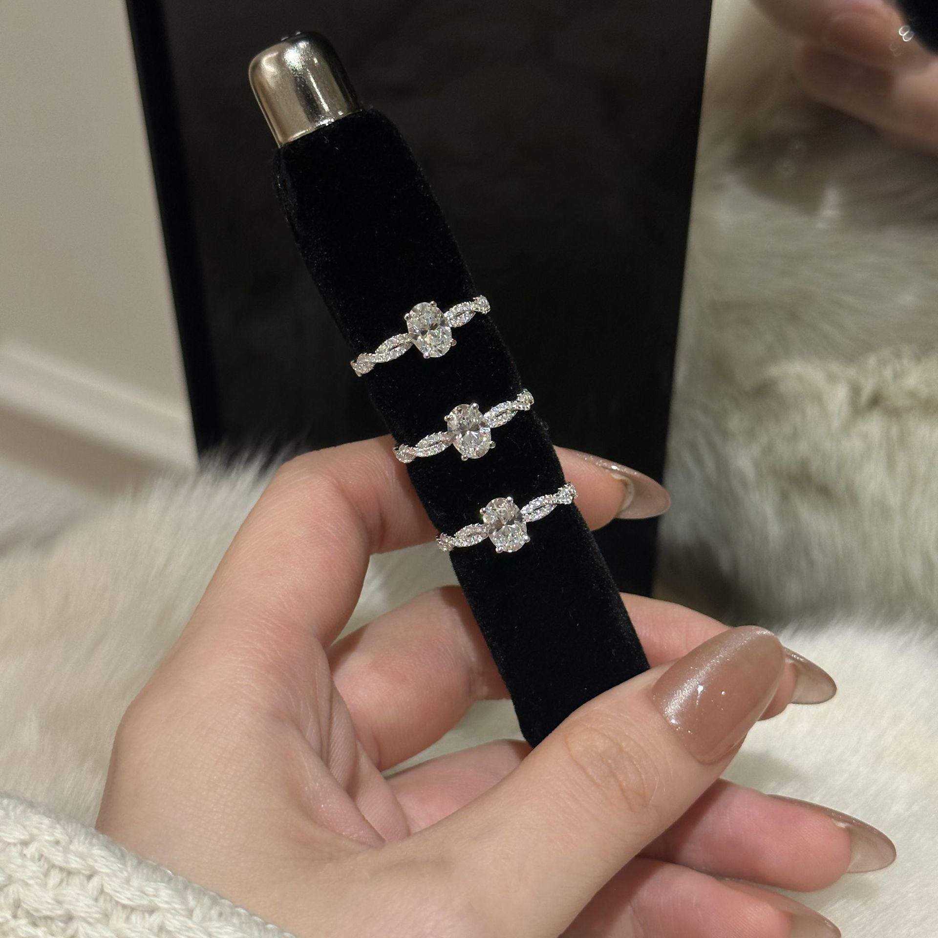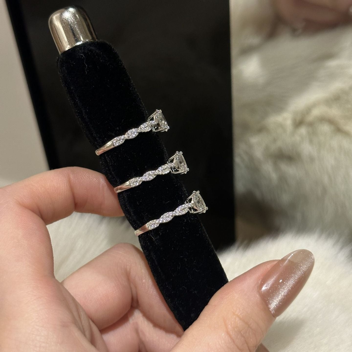 Crafted from sterling silver and sparkling zirconia, this Spinning Ballet Round Twist Diamond Ring is inspired by the graceful twirls of the ballet. The twisted shape of the ring resembles a dancer's gentle twirl, encircling the round zirconia in the center, displaying a dynamic and delicate aesthetic. The luster of the sterling silver and the sparkle of the zirconia reflect each other, and the overall design is simple yet luxurious.