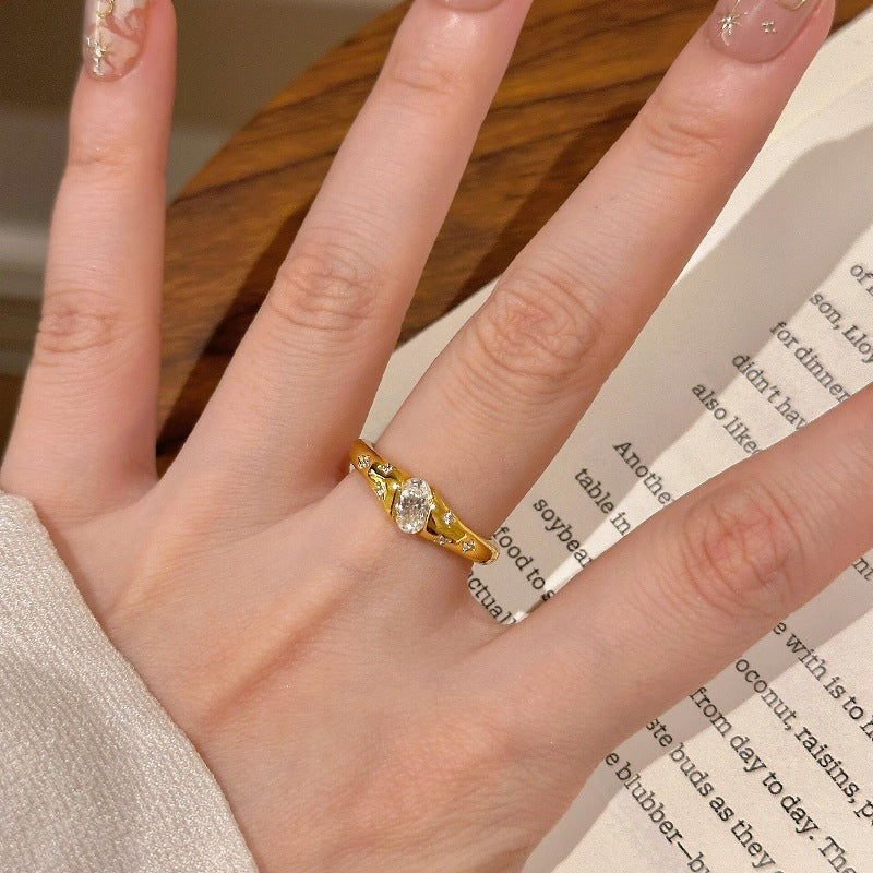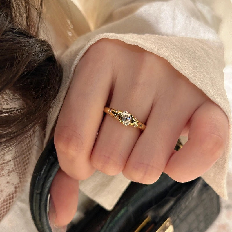 Central gemstone with starlight design: The center of the ring is set with a sparkling zircon, mimicking the bright light of a star.