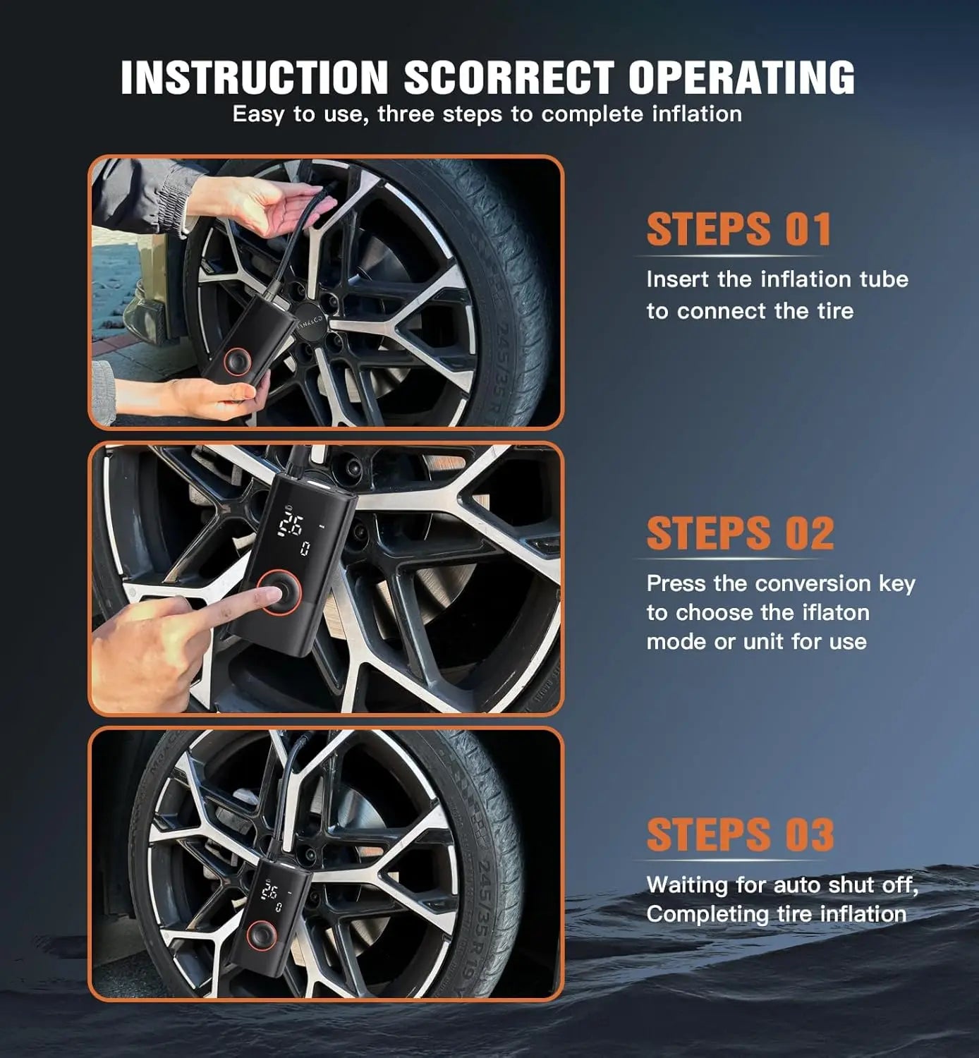 Stay prepared for anything on the road with the Avichic™ Cordless Portable Tire Inflator, a compact yet powerful air compressor designed to inflate tires fast and accurately. Whether you're topping up car tires, pumping a bike, or inflating a ball, this all-in-one device delivers performance, portability, and safety.