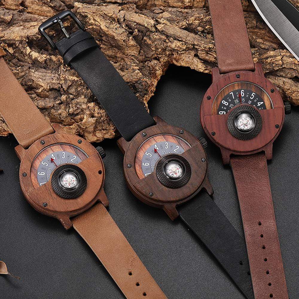 Turntable Compass Dial Wooden Watch