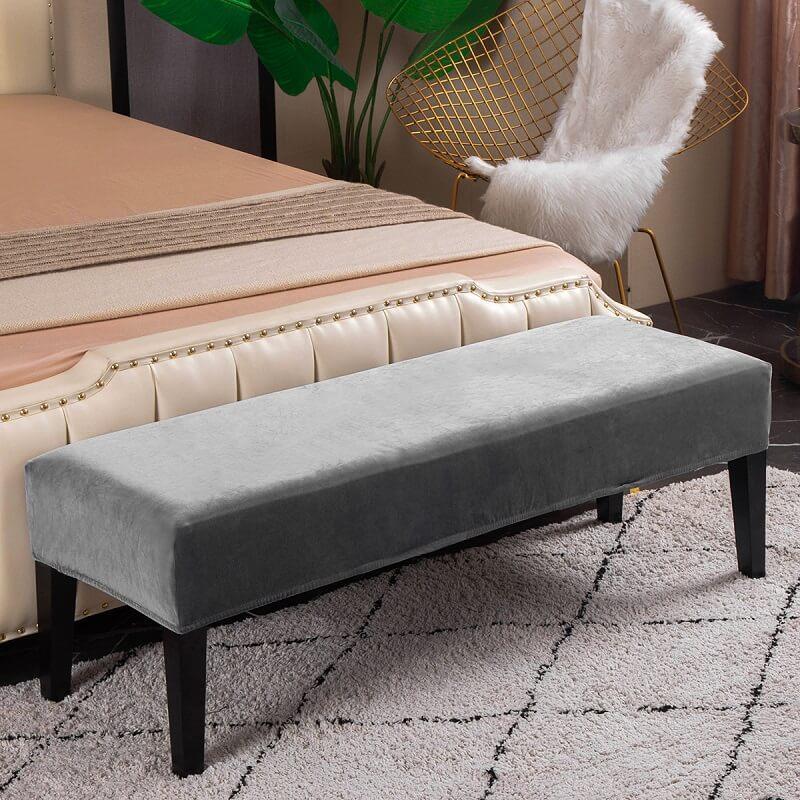 PREMIUM FABRIC: Our velvet plush material have ultimate comfort and machine washable, this bench cover will save much time for you. High elasticity, soft and anti-wrinkle, durable and long lasting.