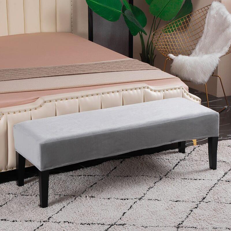 This velvet bench covers not only protect your expensive upholstered bench from spills, stains, wear and tear; And multiple bright and vibrant colors to match or change your dining room theme.