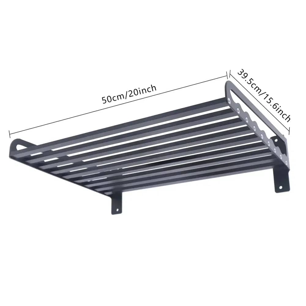 Measuring 50 x 39.5 cm (20” x 15.6”), the Wall-Mounted Microwave Rack provides ample space for microwaves and other kitchen items without overwhelming your wall space.