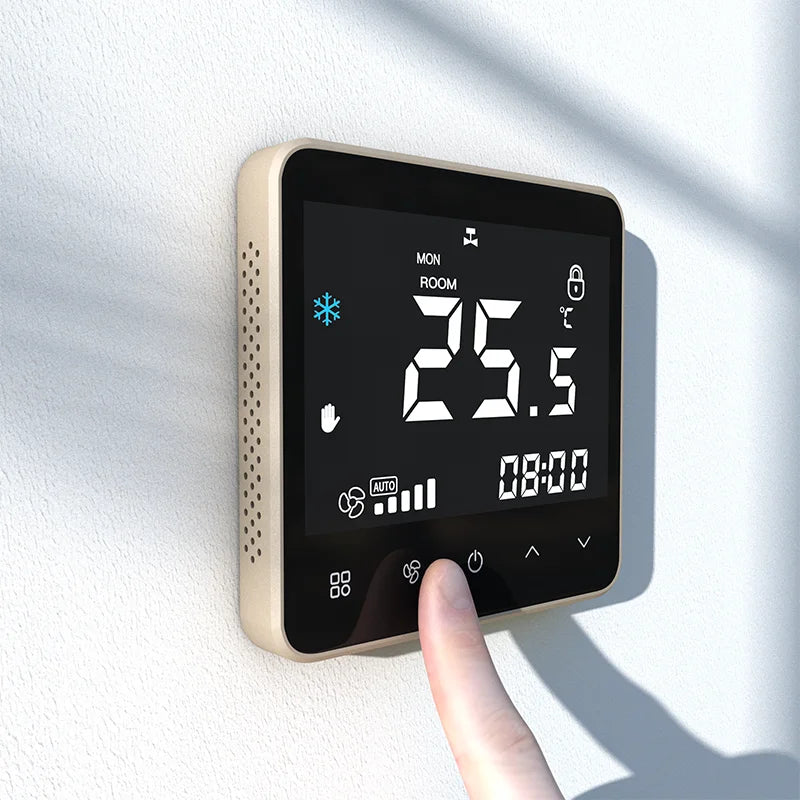 WiFi Smart Air Conditioner Thermostat – Touch Screen Cooling & Heating Controller with Fan Speed Control