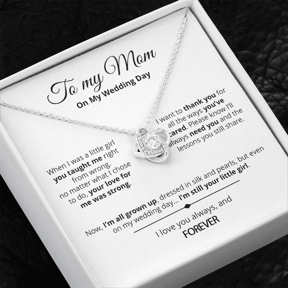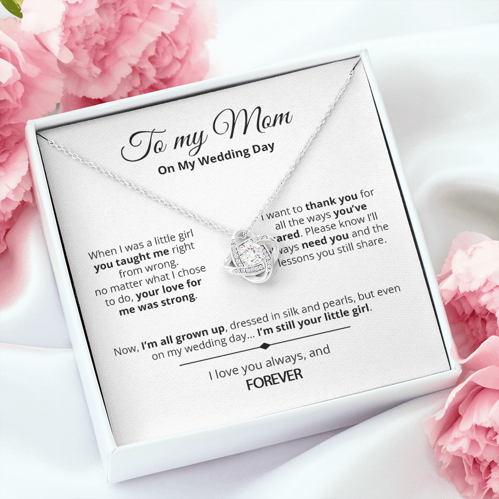Your Little Girl - Mother Of The Bride Gift From Daughter - Love Knot Necklace - White